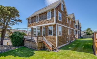 This sparkling townhome has lots of sweet amenities for your stay in Seaside. Contemporary furnishings in the great room surround a gas fireplace and flat-screen TV, providing a cozy gathering space for your guests. The fully equipped kitchen keeps everyone in the loop with a small table for grabbing a snack or glass of wine. Upstairs you’ll find a queen bedroom and a spacious king primary suite with vaulted ceiling, TV and extra sitting area. You’re situated close to downtown Seaside and the Seaside Aquarium, so there’s plenty to do: dining, shopping and the unique downtown amusement park for those who love town and the Promenade and miles of open, sandy coastline for the beach lovers. Drive north to beautiful Astoria or south to Haystack Rock on Cannon Beach—there’s so much to do you’ll want to book another stay in this convenient, relaxing home away from home!