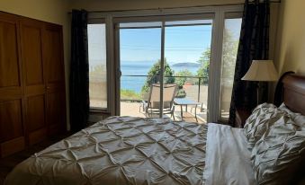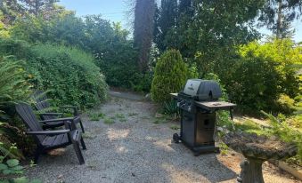 The kitchen has good amenities. The seating space with the fire table was lovely just off the kitchen. It was covered so you could sit out in a light rain. The living space was lovely and large. The view was amazing watching the tugboats and other boats go by. This is not a waterfront property but beach access is a one minute walk. The master bedroom was huge with lots of drawer space. The other two room were ample. The beds have seen better days. One was very squeaky. There were some cleanliness issues and some minor maintenance issues and based on the host quick response they will be addressed quickly.