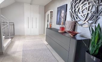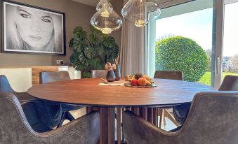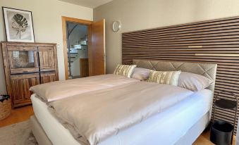 Our holiday accommodation "LIEBLINGSPLATZ" in our Villa Seekirchen is generously designed across three floors and offers a wonderful view of the greenery. In the evenings, you can admire the most beautiful sunsets there. The open and friendly living area with a kitchen, dining area, and living room, as well as the terrace with lounge furniture and dining table, invite you to spend time together (terrace furniture and grill are available from May to September, depending on the weather and temperature). Our accommodation features 4 bedrooms, 3 bathrooms, and a guest toilet on the ground floor.