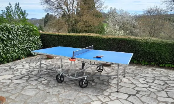 Large paved terrace (large table with parasol, deck chairs, etc.) with panoramic views of the countryside and the village. Ping pong table.
