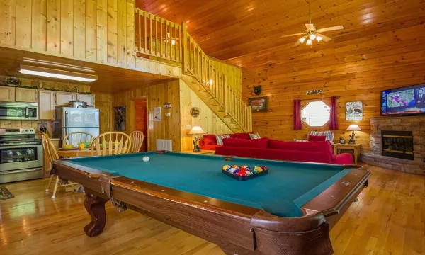 We enjoyed our stay here; however there were some minor things to address regarding the cabin, itself. Many pros, including: The location was convenient to everything we wanted to see and do; pet friendly; cleanliness; space for everyone in our group; washer/dryer; hot tub was clean and ready for use; Arcade console. Cons: no bath mats or floor towels for the bathrooms; no real “mountain view”; rickety bed on main level; pool table swayed and the legs were bowed. Again, we enjoyed our stay and the space was nice and clean. Just a few minor details to note for future guests!