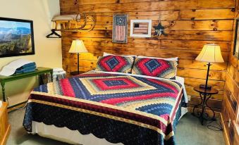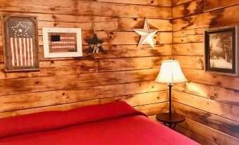 American Gem is a one-level cabin with two guest suites. Each suite has a king-sized bed with high quality linens, a corner Jacuzzi tub and an adjoining bathroom with step-in shower. Both suites are equipped with flat panel TV's, Infinity (Comcast) cable TV and Internet. There are rocking chairs on the front porch and a spacious back screened porch.