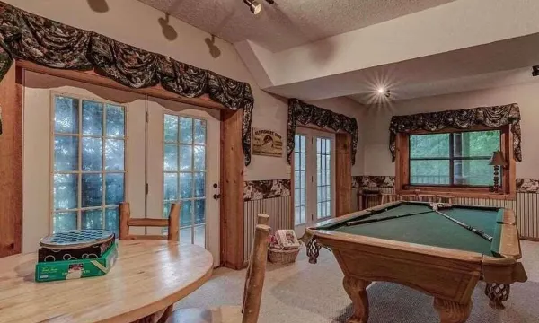 On the lower level of a cabin, there is a full-sized pool table complete with multiple cues, so you can challenge your travel companions into the late hours of the night.