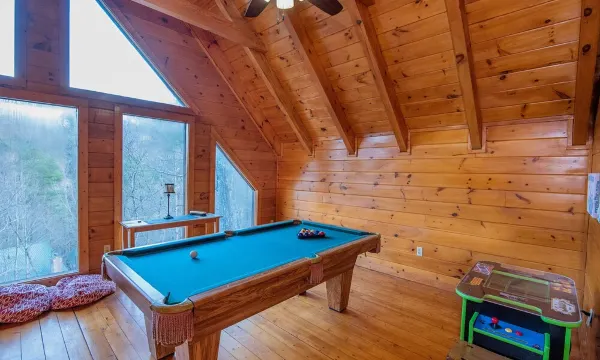Your Pigeon Forge Gatlinburg cabin rental keeps you close to area events and adventures that will fill your family's vacation days, but it's nice to have a home in the Smokies to return after a day of adventure. Enjoy an evening cookout on the charcoal grill, fun games of pool with family members, or venture outdoors for a soothing dip under the stars in your spacious hot tub.About pets:No pets allowed.About checkOut:Check out before 10:00 AM.About children:Children allowed: ages 0-17.About checkIn:Check in after 4:00 PM.About smoking:Smoking is not permitted.About minBookingAge:Minimum age to rent: 25.About events:No events allowed.