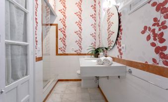 Upon entering, you’ll be welcomed by a spacious and bright kitchen, fully equipped with all the utensils you’ll need for a practical and enjoyable stay. At the center, a stylish dining table provides the perfect spot to share special moments. To the right, you’ll find a cozy living room featuring two armchairs, a comfortable sofa, and a Smart TV, perfect for relaxing after a day of exploring the city.
