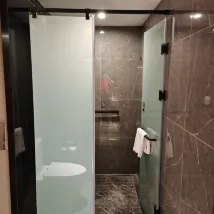 Servizi: Il bagno è diviso in zona umida e zona asciutta, e il WC e la toilette sono due spazi separati, il che è fantastico! Da notare che il cibo d'asporto verrà consegnato da un robot, il che è altamente consigliato per le ragazze che viaggiano.