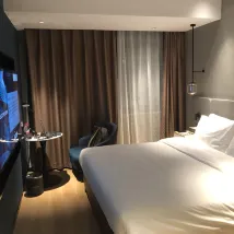 Sono andato a vedere un concerto, è vicinissimo allo stadio di calcio Hongkou, a una fermata della metropolitana, e a soli 20 minuti a piedi, il che è molto comodo. L'uscita della metropolitana della linea 3 è a solo uno o due minuti a piedi. L'hotel è molto pulito e i servizi sono ottimi. In estate, ci sono pantofole di lino, di ottima qualità, e anche i prodotti da bagno sono buoni. Al momento del check-in, la reception mi ha informato in modo proattivo che la camera che avevo prenotato si trovava sul lato vicino alla metropolitana leggera. Considerando che la metropolitana leggera era terminata al mio ritorno la sera, e non era in funzione al mio check-out la mattina, e che potevo dormire bene, non ho pagato la differenza per passare a una camera più silenziosa. La reception mi ha offerto in modo proattivo un upgrade a una camera più grande. Nel complesso, sono stato molto soddisfatto e il rapporto qualità-prezzo è stato molto alto.