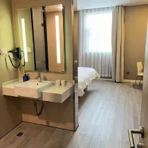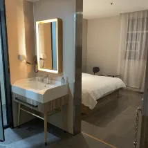 La camera è pulita e spaziosa, arredata in modo accogliente e completamente attrezzata. La biancheria da letto è morbida e confortevole, per garantirti un sonno ristoratore. Anche i bagni erano molto puliti e dotati di articoli da toeletta di alta qualità.