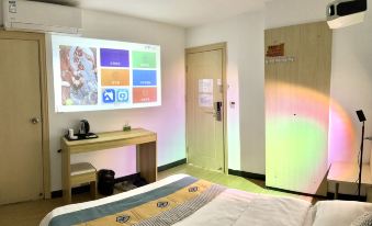 房間很舒適温馨,投影儀效果很好很清晰, 設施齊全,比去電影院看一次電影划算很多!停車也是免費的,房間設施齊全,衞生乾淨整潔,床鋪舒適,前台服務態度也太好了吧!有什麼問題都可以耐心解決!!附近吃東西點外賣都挺方便,推薦推薦!