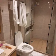 Location is great, above shopping center complex and within waling distance to another new shopping mall across the road. Many food outlets around, starbuck, kenticky, cafe and chinese cuisine and a small convenient shop. Room: low ceiling got hit a few times against the ceiling light. Overall very clean, no smell, above average 3 star hotel. aircond. Toothbrush, towels. Put your owm rubbish out the room in the morning.Great place for taking a break before carry on your travel via Hongqiao Train station or domestic airport. Warning Hongqiao train station is always crowded with thousands of passengers.