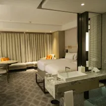 Good facility. International standards fitness and swimming pool. Big room. Easy to access train station and airport.