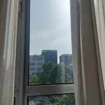 The communal spaces, like the gym and laundry facilities, are well-maintained. However, the location is a bit far from the metro, and breakfast is served at a nearby hotel rather than on-site.
