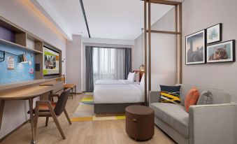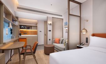 Home2 Suites by Hilton Jinan Shanghe is located at No. 33 Shangxi Road, Shanghe County, in the northern part of Jinan, the “Spring City.” Situated in the core commercial district of Shanghe Xiaoyiwu Commodity City, it is adjacent to Binhe Park, offering picturesque scenery. It is just 1.5 kilometers from the Shanghe Flower Expo Center—a key attraction within the National Agricultural Science and Technology Park's Hot Spring Agricultural Tourism Zone—and only 3 kilometers from the Shanghe Hot Spring Base, a provincial-level model destination for tourism and wellness. The hotel is a 5-minute drive from Shanghe County Long-Distance Bus Station, approximately 10 minutes from the under-construction Shanghe High-Speed Rail Station, and 5 minutes from Shanghe Expressway. With its prime location and convenient transportation, the hotel offers easy access to major commercial centers and tourist attractions.The hotel features 126 guest rooms, including Comfort King Rooms, Flexible King Rooms, Flexible Twin Rooms, Flexible Twin Lake View Rooms, and Lake View Suites. Amenities include the Oasis Lobby, Inspiration Dining Area, Fitness Center & laundry area, high bar seating & internet printing zone, a 24-hour Heart Selection Mini-Mart, and self-service beverage bar. The annex building houses the Golden Imperial Chinese Restaurant and International Banquet Center, featuring 26 private rooms of varying sizes and 5 distinct banquet halls including a 5D holographic projection banquet hall, multi-function hall, Korean-style wedding chapel, Crystal Wedding Chapel, and All-Purpose Custom Hall. The largest banquet hall—the 5D Holographic Projection Banquet Hall—spans nearly 800 square meters, accommodating diverse banquet and conference needs. It also features the à la carte dining area Lu.Yue, serving lunch and dinner for up to 68 guests. Focusing on local flavors, it continuously innovates modern Shandong cuisine and fusion dishes tailored to younger palates while preserving traditional Shandong culinary heritage. The flexible spaces are thoughtfully equipped with home-like amenities, allowing guests to maintain their usual lifestyle. They can relax as if at home, embracing the “Free to be you” travel experience.