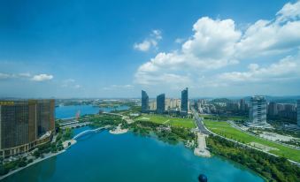 Crowne Plaza Shaoxing is a shining new landmark of Shaoxing with modern and gorgeous architectural appearance and elegant and extraordinary design style.The hotel is located about 50 minutes away from Hangzhou Xiaoshan International Airport by car with perfect quality facilities and convenience.25 minutes to China Keqiao International Textile And Accessories Fair; Adjacent to lu Xun's former residence, Dayu Mausoleum, Shen Garden, Shimao Cinema, Shaoxing Theatre, Shaoxing Opera Museum, 2 golf courses and other famous tourist attractions and entertainment venues.The hotel has 453 elegant and comfortable guest rooms and luxury suites, all equipped with high-speed wireless Internet, LCD flat-screen TELEVISIONS, mini bar and large French Windows with wide views. Considerate room service allows you to enjoy hangzhou delicacies and special snacks at any time.The executive floor provides personalized business and concierge services to create a spacious and elegant space for your high-end social and business interactions.The unparalleled atmosphere of the hotel will bring you a pleasant and enjoyable business stay and make you a perfect trip.With a grand ballroom of more than 1,050 square meters and 9 multi-function halls, the hotel is the ideal place for a variety of themed events, cocktail parties and wedding celebrations. Crowne Plaza professional meeting team focus on every details of the meeting planning and management process, and cooperate with the "two-hour feedback" service to ensure that every part of your event is perfect.