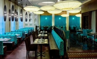 A vostra disposizione troverete una colazione servita ogni mattina con opzioni continentali e all'italiana, l'Arjwan che serve specialità del Medio Oriente a pranzo e a cena, il Marasea che propone frutti di mare, l'Al Qubtan, dove gustare piatti della cucina internazionale, e il bar a bordo piscina che propone snack a tutte le ore del giorno.