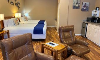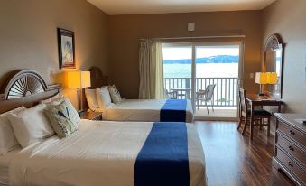Overall a real nice stay. It has the potential to be a "5". The room had a kitchenette with cupboards but no amenities like cups, plates, flatware or even a toaster. Also some sound proofing would help with the ability to hear the TV in the next room. We liked the spacious room and balcony overlooking the water and would definitely recommend this lodge.
