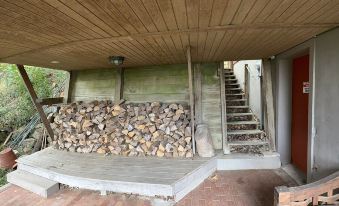 The upper driveway can easily accommodate several vehicles. If using the lower driveway, please mind the conditions and drive down the slope carefully.