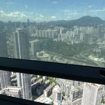Located in a mixed residential/hotel/business building. My room located on the 49th floor; view was supberb with 2 small "balcanies" , but glass windows were dirty which was a big nuisance. Other features was nothing to write room about. The worst to mention was the bathroom; it had a very high threshold (5 inches?) at the door. Which i tripped over 3 times before I learnt to avoid it. The shower had no curtain, no matter how careful, you will splash water out on floor. Water heater is the tankless type, smaller and unstable. For the price I paid, im sure I can get something better.
