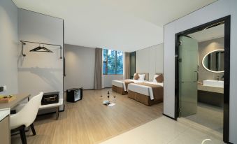我是跟朋友一起來深圳找工作的,行李有點多我電話聯繫前台還幫忙搬行李了點贊👍,空間面積比較大,環境也是不錯,衞生方面也很好,乾淨舒適寬敞。酒店離7號網上沙地鐵站也非常近,交通方便。洗澡的水温度適中,水壓夠大,洗的很舒服!