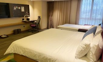 酒店位置很好,周邊吃喝方便,前台掃碼停車場免費停車,去壹方商場很近,距離龍華區山姆、開市客都不遠,房間的雙拼床很大,很適合帶孩子,裝修大氣簡約,網速快、熱水充足、不足就是床頭的usb充電插座有一邊是壞的,另一邊是好的,以及房間有冰箱櫃卻沒有冰箱,另外電視也不是網絡電視,不能投屏,也沒有電視端視頻應用軟件,早餐很豐富美味並且孩子1.4米以下免費,整體值得推薦,下次還會入住