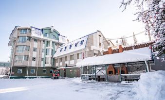 Останавливаемся в этом отеле уже второй раз, очень довольны. В этот раз был номер на первом этаже угловой. Переживали, что будет шумно, поскольку номер прямо рядом с ресепшен, - ничего подобного. В номере очень тепло, даже жарко (на ночь открывали форточку). Автомобильная парковка для постояльцев бесплатная. Лыжехранилище с сушилкой для обуви, открывается ключ-картой. В холле кулер с водой. Завтраки очень сытные: есть традиционный для завтраков набор: каша, яйца, хлопья с молоком, - и многое другое: куриный бульон, картофель, запеканки, салаты. Овощная и фруктовая нарезка, колбаса-сыр. До подъемника близко, но все равно чуть в горочку/ Хороший Wi-fi. На втором этаже есть массажное кресло-автомат. Номер категории "эконом": + Телевизор. + В санузле душевая кабина, бойлер, пол с подогревом, из косметики зубной набор, расческа, гель, мыло, шампунь. Докладывались каждый день. + Фен. + Сейф. - Тапочки в номера данной категории не предоставляются - Холодильника нет. - Матрас уже подустал, уже скоро начнут пружины выпирать Рекомендую. Персонал вежливый, внимательный