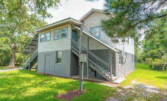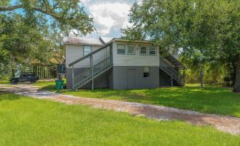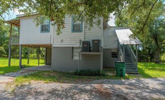 This bayou-facing property will be sure to enhance your stay! We offer a washer/dryer, and basics like dishes and pots/pans. From our easily accessible dock connected to the property, you can fish and kayak. This apt is located within a 10 min drive to the beach, grocery, Walmart, boutique movie theater, & fast food. The location is also within 1 hr of New Orleans. This elevated apt comes furnished with the basics.