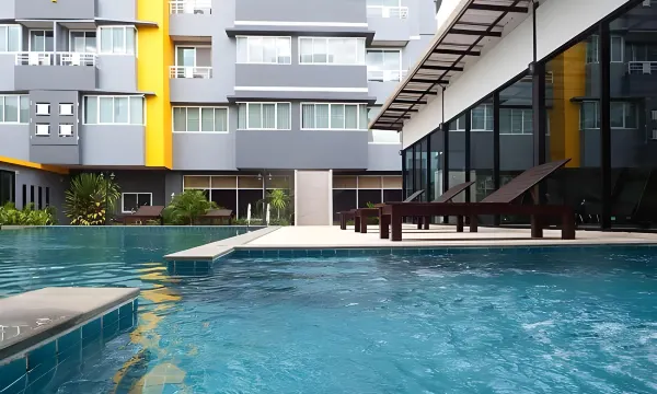 พื้นที่ส่วนกลางอย่างสระว่ายน้ำและฟิตเนสก็สะอาดและดูแลอย่างดี บรรยากาศรอบ ๆ เงียบสงบ เหมาะแก่การพักผ่อนจริง ๆ
