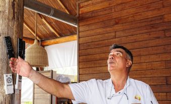 We were unfortunate to travel during low season, which in Koh Rong means 99% rain everyday, by conversations with locals they are fully aware of this yet all bookings and activities are business as usual but cannot be enjoyed, such as snorkling, BBQ boat etc. because of the weather we were stuck in the hotel 90% of the time, there is NO TV (it does say in room amenities, I read too late) so just be aware, specially if travelling with little ones. The pool is not an option because of thunder and lighting. It costs 15USD to get to the hotel from the pier. There is no ATM on the island only one stall that lets you use your card to pay the local then they give you the money, this is charged at 8% 😡 This is important because for lack of internet connection you cant always use card to pay at restaurant for your lunches and dinner, also when you can, there is a 3% fee to do so. All activities must also be paid in USD but old rugged bills are not accepted even if they have been given to you by other traders ib the island or if the bills got a bit wet in the rain, which was a frequent problem.So come with plenty of new dollars or you'll find yourself stuck with little options. the night before check out, we asked the staff to please let the ferry company know we would be taking the 9:30am ferry to Sihakouville (as instructed by the ferry company). We booked a 9:00am return trip to the pier as recommended. However as we arrived the ferry was leaving, at 9:15. We were not the only ones left behind. Some people had a flight to catch later that day and were made to pay another 17USD per person as according to them it was "impossible" to fit them into one of the almost-empty-boats of one of the other many ferry companies, because they dont work together, some families payed up to 70USD to not miss their flight despite it not being their fault. The hotel was standard, for a beach hotel, nice huts, the beds were clean and comfortable and the highlight was definitely the food at the restaurant, over the 4 days, we tried many dishes all of them delicious. I can imagine during sunny season it must be a beautiful location and a beautiful hotel. saying this, I already thought it was overpriced for low season compared to similar hotels in Thailand and Bali, so for me the price you would pay in high season I would not consider it, specially given the whole experience with the ferry and USDs. ☹️