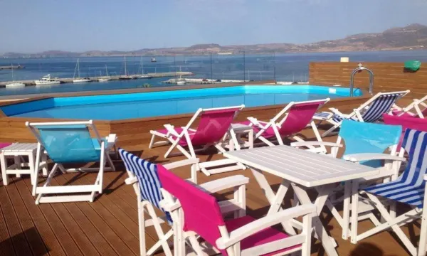 È un albergo tre stelle, semplice e un pò datato. Il rapporto qualità prezzo, cmq, è molto buono. Visto che il punto forte è la vista panoramica, consigliamo di prenotare una stanza sul davanti, sulla facciata che dà sul porto, perché dal terrazzino si può ammirare il corso principale che si affaccia sul mare, le palme e l'alba, con il sole che sorge dalla montagna del lato destro del Golfo. In alternativa si può ammirare la vista sul porto e sulla cittadina dal roof top con piscina, anche questa un pò datata, ma molto piacevole. Sul tetto c'è anche un bel bar dove gustare una bevanda ammirando il panorama. Camere semplici, con frigo e cassaforte. Bagno in linea con la data di costruzione dell'albergo. Colazione a buffet basica, ma sufficiente. La signora alla reception non è particolarmente portata al rapporto con il pubblico. Quindi, nel complesso un albergo un pò datato, con una posizione spettacolare, con un buon prezzo.