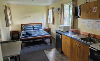 Very friendly and helpful management. The late check in was no problem. Our studio cabin had undercover parking. Inside it was clean and well equipped for a multi night stay.