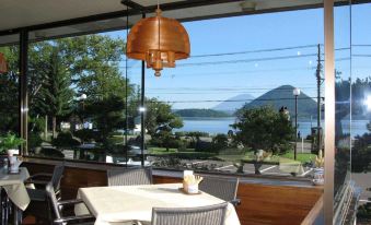 The opposite side of the road is the park where you can enjoy scenic views of Lake Toya. Nearby the hotel, in the short walking distance, you can find a good grocery. The room is spacious and clean and has a good view of the lake. A set of breakfast is very good. The owner/staff is kind and friendly. We really enjoy staying here.