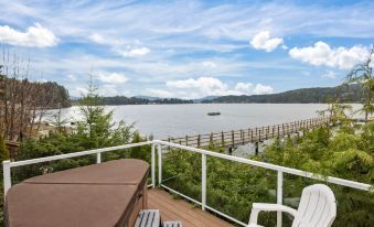 Seascape Inns ~Beach House unit ~Stunning Location! Gorgeous sunsets! Offering a private self contained one bedroom retreat with private deck and hot tub, gas fireplace, and large flat screen smart TV with cable in the seating area as well as the bedroom. Fully equipped kitchen and well stocked pantry. This private self contained unit is tucked away just steps from the water. Ideal for anyone looking for a quiet place to unwind and relax. Take a stroll along the property’s 200-foot boardwalk and dock to immerse yourself in the ocean’s sights and sounds. Borrow a crab trap and try your luck off the dock! October to March is when big Dungeness crab are most plentiful and the crabbing in Sooke Harbour is fantastic! Take a kayak out for a leisurely paddle! Bring your boat? We have over 200ft of dock space! Sit on the terrace and star gaze or play a game of bocci ball together. Seascape Inn is a small boutique hotel situated on the Sooke Inlet, just a kilometre from Sooke town centre.