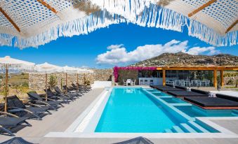 Stupenda struttura.. paragonabile ad una bomboniera!! Le piscine favolose con i lettini sospesi, la camera pulita ed elegante con una Jacuzzi privata anche se noi preferivamo quella grande (con acqua di mare), Il ristorante Top!: Si mangia davvero benissimo noi lo abbiamo testato in 2 sere. La posizione è davvero strategica in 7 barra 10 minuti ti trovi in tutte le zone dell’isola, ovviamente avrai bisogno di un auto, ma anche per quest’ultimo caso ci pensa la struttura che previa tua richiesta ti fa trovare un’auto a noleggio con prezzi davvero Competitivi a confronto con tutte le agenzie presenti a Mikonos. Lo staff poi.. che dire non saprei come elogiare la cura che ci mettono affinché il tuo soggiorno sia perfetto.. (sempre presenti ad ogni tua richiesta/informazione) un plaudo a DORA, DIMITRI (che parla un ottimo Italiano) ad Angelica con la sua squisita dolcezza e bontà che gestisce il ristorante e alla cuoca Maria… ah proposito dimenticavamo la Colazione la mattina e’ squisita. Da tenere presente che chi scrive è molto esigente. Unico neo, ma a solo a favore di critica costruttiva, consiglierei di approvvigionare ogni stanza con uno stendino (apri e chiudi) anche se sono cosciente che non andrebbe in linea con lo status elegante della struttura.