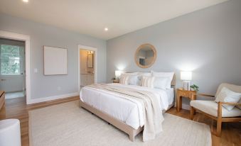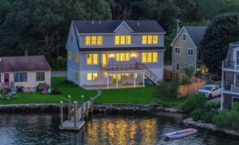 Brand new luxury home on Narrow River, constructed by award-winning design-build firm Davitt Design Build. This stunning 4-bedroom, 3 sleeper sofa, 3.5-bath home comfortably sleeps 14 and offers breathtaking water views from every bedroom. Just steps from the water, enjoy exclusive access to your private 40' dock, perfect for boating, fishing, paddleboarding, kayaking, and swimming.