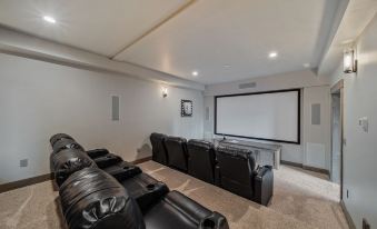 Bottom floor has an Indoor Pool, large outdoor hot tub.. Game room with Pool table, Foosball, bar area with multiple TVs for watching all the games. Rock fireplace with large TV mounted above... Movie Theater room completes the entertainment experience downstairs.
