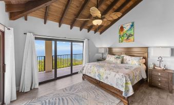 The Main (upper) Master Bedroom flaunts a new King Bed and 90 degrees of unobstructed views through the sliding glass doors to the wrap around deck offering the Caribbean as the backdrop. With the luxury of a walk in closet, separate linen closet and well designed en suite Master Bath; as well as a comfortable recliner to kick back and take in the view, this room is truly the Captain or Queen’s Quarters!