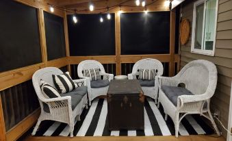 The house is located on a quiet cul-de-sac. The was house was clean and spacious, and the modern bathrooms really added to the appeal. The enclosed back porch was nice and was used once the temperature droppped. The host was easy going and communication was great. We’ll definitely be looking for the availability of this house next time we’re in town.