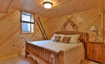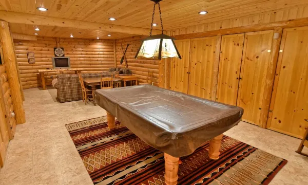 Upstairs there is a master suite loft with a king bed, en suite bath with a double shower, leather chairs and a private deck. A wall of windows provide memorable views across the lake year round. The loft area is a treat in itself. Downstairs there are two knotty pine bedrooms warmly decorated with a Northwoods theme and handmade beds. They share a newly finished full bathroom. The downstairs is also home to our large game room with a pool table, game table, and foosball table. We also have a large collection of children's toys and games. The laundry area is in the basement as well.