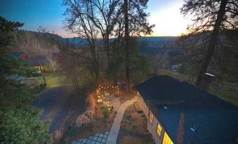 Nestled in the historic South Hill of Spokane, this artistic studio offers an enchanting retreat for guests. With a cozy living room featuring a queen bed and a futon, along with a well-equipped kitchen, this amazing property provides all the comforts you need. Enjoy the convenience of free high speed WiFi, a hair dryer, Pillow Top oversized queen, & Fireplace. Outside guests can enjoy a private hot tub, a BBQ, lighted courtyard, Sunset observation patio. The backyard is a social area for all guests & is the heart of the property offering, a 12 foot table, huge firepit, bistro lighting all set in front a majestic view over the city's west ravine. Book now and enjoy everything this perfect retreat has to offer.About pets:No pets allowed.About children:Children allowed: ages 0-17.About smoking:Smoking allowed: in designated areas.We're just looking for a basic courtesy to owner.About events:Events allowed: family gatherings and birthday parties.Maximum event attendees: 7,Please announce your guests before arrival.