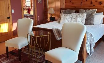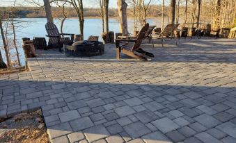 As you walk in, you will be met with vaulted ceilings, turret windows, and a stone wood-burning fireplace that will instantly give you permission to exhale as you start your getaway. Each room is kept as a private room with one bed in each space. There are 3 bedrooms, two with ensuite bathrooms, and one with an adjacent bathroom and a powder room on the main level. We also have a loft sleeping area with a full bed. The ground-floor primary suite has a private balcony and the jetted tub (a favorite!) Whip up a gourmet meal in our fully equipped chef's kitchen then cozy up as you watch the sunset dip into the Lake. Kick back and enjoy your favorite show, or play some games or go outside and enjoy the firepit (a new one under construction!).