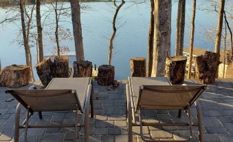 We loved the great-room just off the dining/kitchen area, as well as the boat dock for lounging and kayaking. Used the patio for grilling and campfire with s'mores. The location at the north end of the lake is a convenient launching point for area attractions. Couldn't really use the spare sitting room as a bedroom, but fortunately we didn't need it. Had a few minor issues, but the owner/host was very responsive.