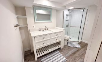 Stay connected and entertained with high-speed internet access points throughout the house and backyard. Cozy up by the double-sided wood-burning fireplace, or indulge in movie nights with the 65-inch 4K smart TVs in the living room and lower-level entertainment area. All bedrooms are equipped with 4K smart TVs. To enhance your convenience, a complimentary coffee bar and toiletries are provided.