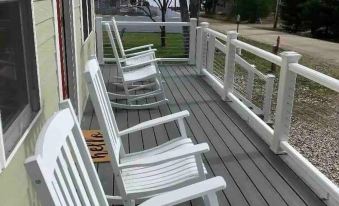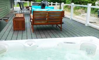 We we're celebrating a birthday, there was a large private deck with ample seating. The hard wired generator worked flawless as we arrived to a strong Maine windstorm..nice shared small beach area great for kids about a 2 minute walk from house. Owner graciaslly trailered the kayaks to the beach area for easy entry..the hot tub was a nice relaxing end to the day