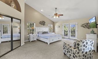 The upstairs features the perfect master retreat with a reading and kids play area in the the loft and a spacious master suite with a king bed, 55" Ultra High Definition TV, French Doors to a private deck looking to views and the beautiful backyard. The en-suite bath has a jetted tub, dual vanity and separate shower along with a large closet. On the main-level there are two guest bedrooms that share a bath. One bedroom has a queen bed. The other has bunk beds with a full size mattress on the bottom and a twin on the top bunk and twin day bed. Downstairs is a laundry room and second refrigerator, plus a game and TV room with a 65" Ultra HD TV, cozy recliners, game table and ping pong. Both of the TV's in the home have Roku built-in.. This home has a backyard oasis with grass, tiered flower gardens, fruit trees and berry bushes, built in charcoal BBQ and hardscaped patio areas and areas to explore around the 1 acre property.About pets:Pets allowed: dogs (limit 3 total).Pet fee $15 per pet per night.About checkOut:Check out before 11:00 AM.About children:Children allowed: ages 0-17.We have lots of games plus a play and reading area.About customRules:Septic System
