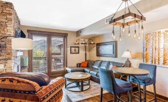 Year-round mountain fun awaits at this stunning condo boasting a larger layout than the other one-bedroom condos in the building, a private balcony with mountain views, and a fully equipped kitchen to whip up tasty meals after a full day on the slopes! No corners were cut with this home away, as the interior is filled with charming decor, high-end furnishings, and a stone fireplace to cozy up beside on chilly evenings with a cup of hot cocoa. Extensive updates in 2021 include new appliances, flooring, bath fixtures, lighting, TVs, furniture, and a unique custom bar top that may be illuminated with 11 different colors to set the mood for the evening. Venture out a bit and you can spend warm summer days lounging by the sparkling pool with that new novel you have been meaning to get to. Not to mention, the hot tub will be just the place to soothe sore legs when you hop off the lift.