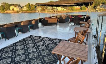 Enjoy a unique experience on this houseboat in Charlotte. This 3-bedroom floating oasis features 3 queen beds, 2 bathrooms with a shower, and a cozy living room with 2 sofa beds. Guests can relax with amenities like AC, heating, a washing machine, WiFi, and an iron. Escape the ordinary and embrace the tranquility of life on the water. The entire upstairs deck offers broad channel and sweeping sunrise and sunset views with room for eating, sunning, relaxing, dancing and unwinding. We hope you'll enjoy your stay at our houseboat.About pets:No pets allowed.About checkOut:Check out before 11:00 AM.About children:Adults only.About customRules:No additional guests or family just stopping by.Houseboat must be booked for the exact amount of guests even if some are not staying overnight..About checkIn:Check in after 2:00 PM.About smoking:Smoking is not permitted.About minBookingAge:Minimum age to rent: 25.About events:No events allowed.