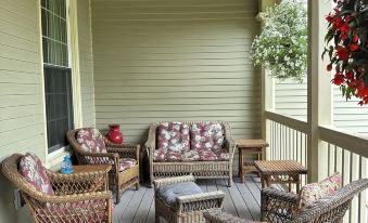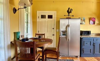 The house has a parlor/game room stocked with board games, a comfy living room with ROKU TV and Sofa Sleeper, and a dining room that can seat eight (ask for extra chairs). All of the artwork is original and done by artists within an hour radius.