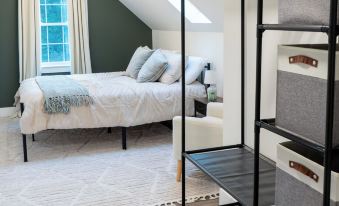 The bright and airy kitchen consists of a coffee bar, brand new appliances, large table and island that provide a great place to play card games when you are not using the space for dining. It is fully stocked with spices, olive oil, Kcups, Sisel instant coffee and more. On the first floor there are 2 bedrooms, 1 King bed and 1 Queen bed. And a spacious bathroom with a shower and a deep tub where you can soak away the weariness from a day of activities.