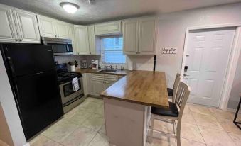 Very nice neighborhood, very quiet. Close to many things. Beds were very comfortable and we slept well. Owner provided a lot of niceties like shampoo, conditioner, soap, keurig pods, etc. Only slight flaw was no access to outlets by top of bed so we had to go get an extension cord for my husband's C-pap machine. Property was extremely clean. We also appreciated the laundry facilities. There are two nice new washers and dryers for use - free - and some laundry detergent available. We'd definitely stay again.