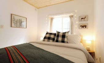 The home itself is a modern and comfortable retreat that is perfect for families, couples, or groups of friends. Walk into the open-concept main level with cathedral ceilings and a breathtaking, south-facing lakeside wall of windows that blanket everything with natural light. There are 180 degrees of lake views to enjoy while lounging on the deep sectional, sharing a meal at the dining table, or brewing your morning cup in our fully-equipped kitchen. A bedroom with a queen bed (new memory foam mattresses on every bed), and a full bathroom with shower/bathtub are also part of the main level.
